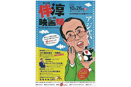 18回目となる「伴淳記念映画祭」が、10月26日(日)に米沢市市民文化ホールで開催。今回は坂本九と伴淳三郎も出演した「見上げてごらん夜の星を」の上映にちなみ、うたごえ広場や産直市場という新企画もあり。前売り・通し券は1,500円。