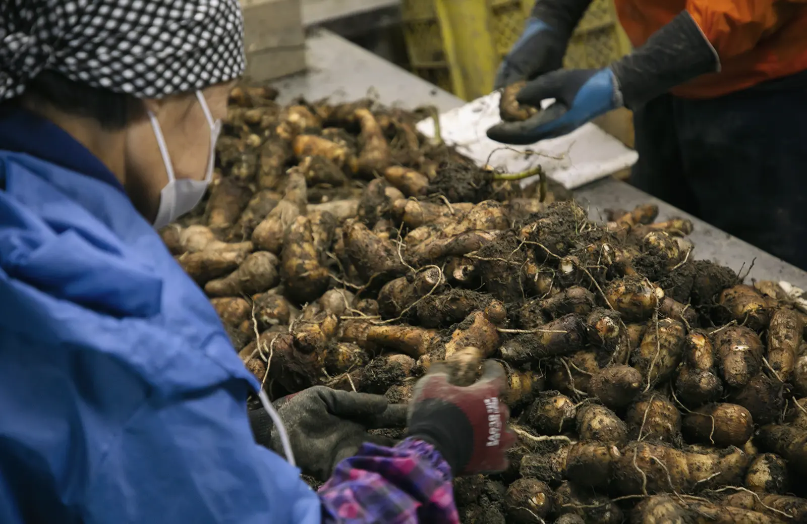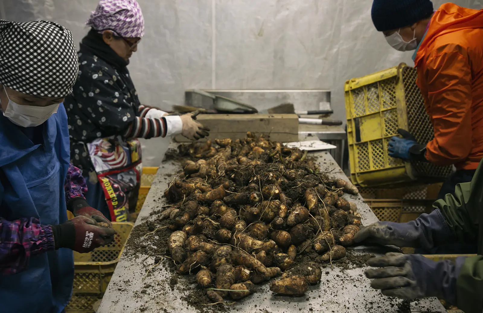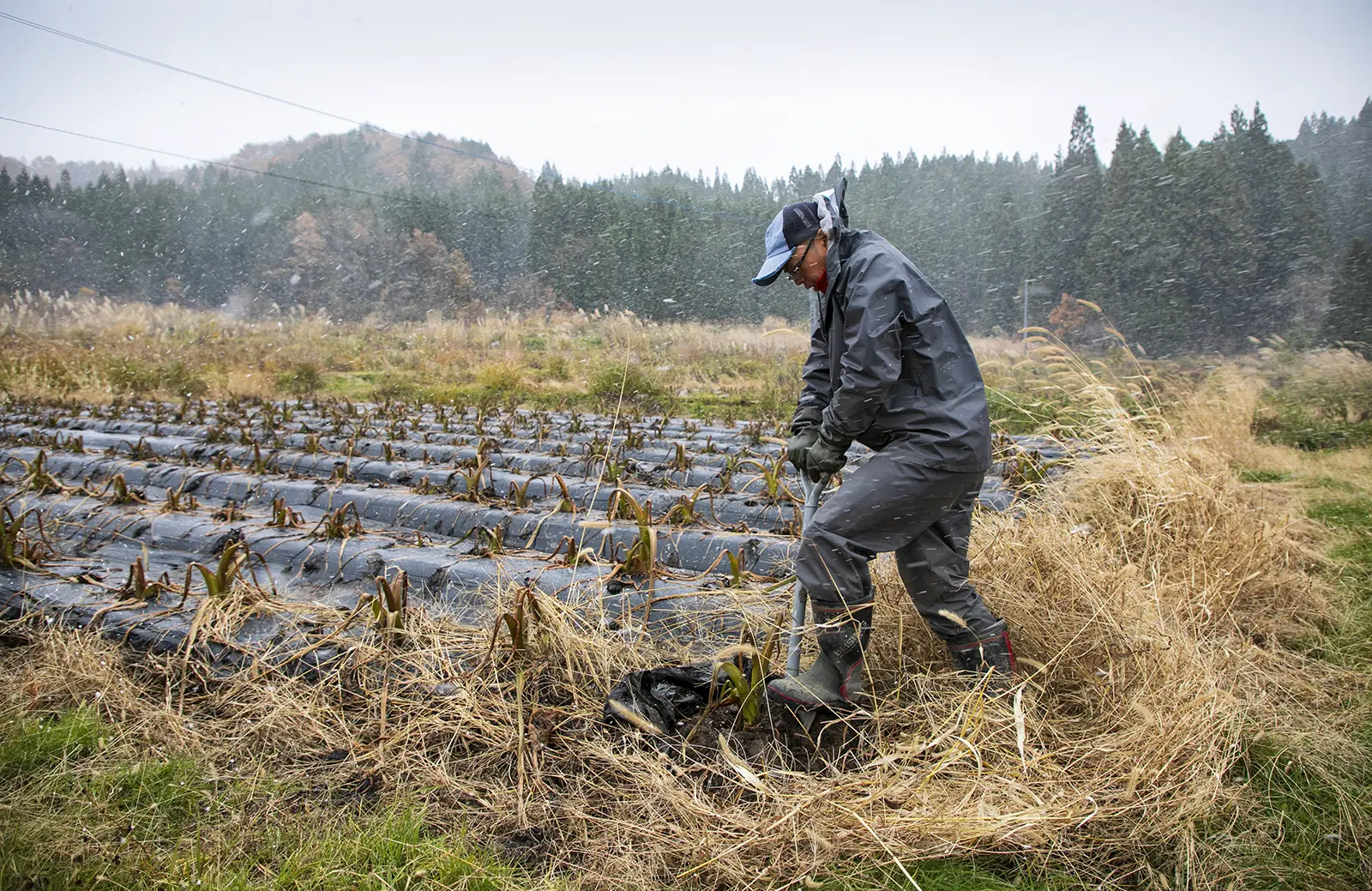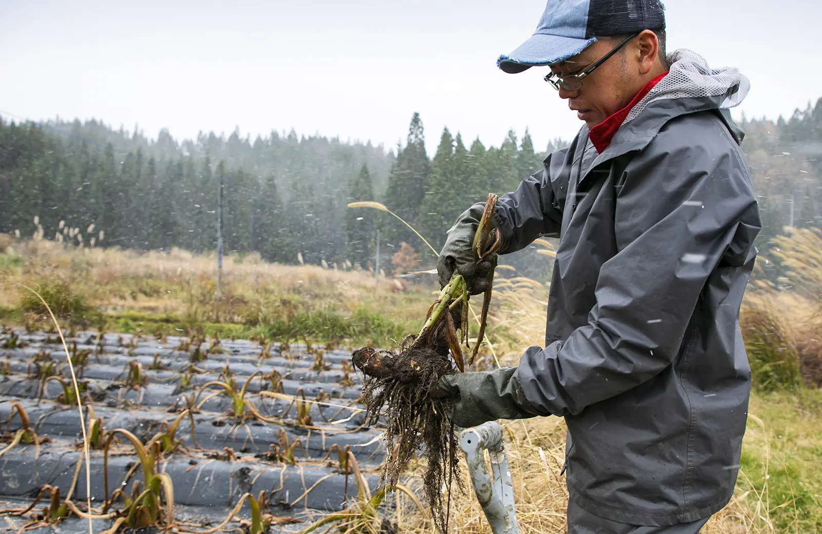 だが、「甚五右ヱ門芋」という品種は存在しない。その呼称というのは、佐藤家の初代の方の名前にあやかって春樹さんが名付けたブランド名なのだ。もともと家族が食べる分として栽培していた“家芋”の美味しさに気づいた春樹さんが少しずつ栽培量を増やし、いまや真室川の特産品として全国的に定評を得るまでになった「甚五右ヱ門芋」。真室川町大沢地区の土壌だけがこの味、この姿を育て上げ、種芋を冬越しする方法は一子相伝で門外不出だ。