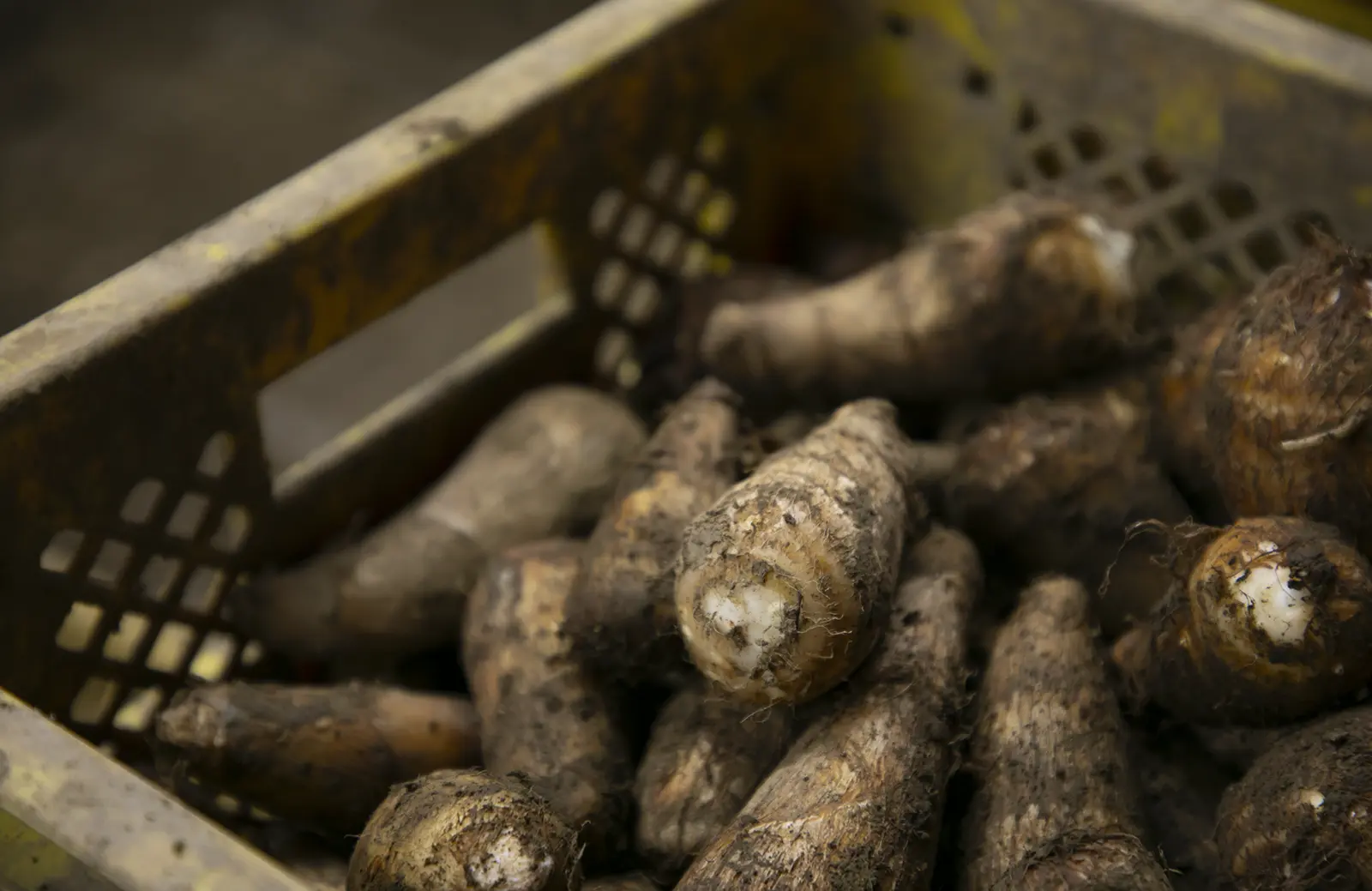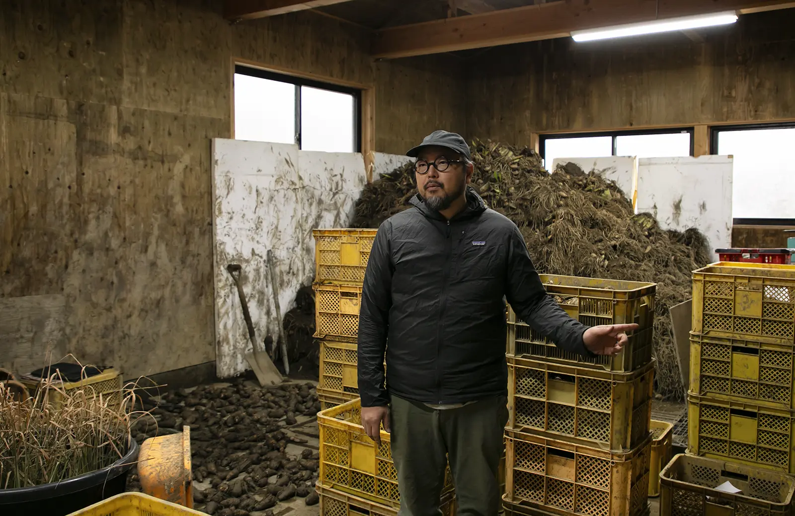 全国にファンを持つ「甚五右ヱ門芋」は、室町時代より佐藤家が代々受け継いできた里芋で、勘次郎胡瓜(かんじろうきゅうり)、畑(はた)なすなどとともに最上地区の伝承野菜のひとつ。550年以上にわたりたったひとつの親族でのみ、ひっそりと絶やさず種芋を継いできたということに驚かされる稀有なる作物だ。佐藤家の第20代目であり、『伝承野菜農家 森の家』の代表を務める佐藤春樹さんがその種芋を受け継いだのはおよそ18年前。新庄市の農業大学校の研修生だった頃から、重労働の多い稲作に難儀している祖父母の姿を見て、米以外の作物で祖父母たちの暮らしを助けたいと想い続けていた、せっかくなら他の人があまりやっていない作物を、との思いから、畑の隅で代々作られていた里芋に目を向けはじめたという。