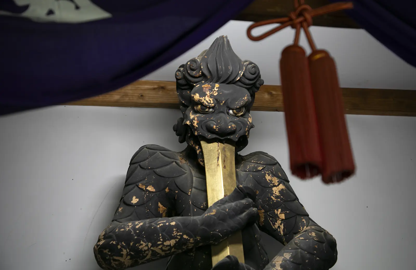 本堂に祀られていたのは、人魚の様な鱗のある身体に長い宝剣をくわえた御姿の波分大聖不動明王。海上安全大漁を守護する神として、古くから漁を営む人々の篤い崇拝を集めている。宝剣にはなぜか二筋の牙跡があり「まさか此の仏像は生きているのでは…」と畏れてしまうほどの迫力で、見る者に迫ってくる