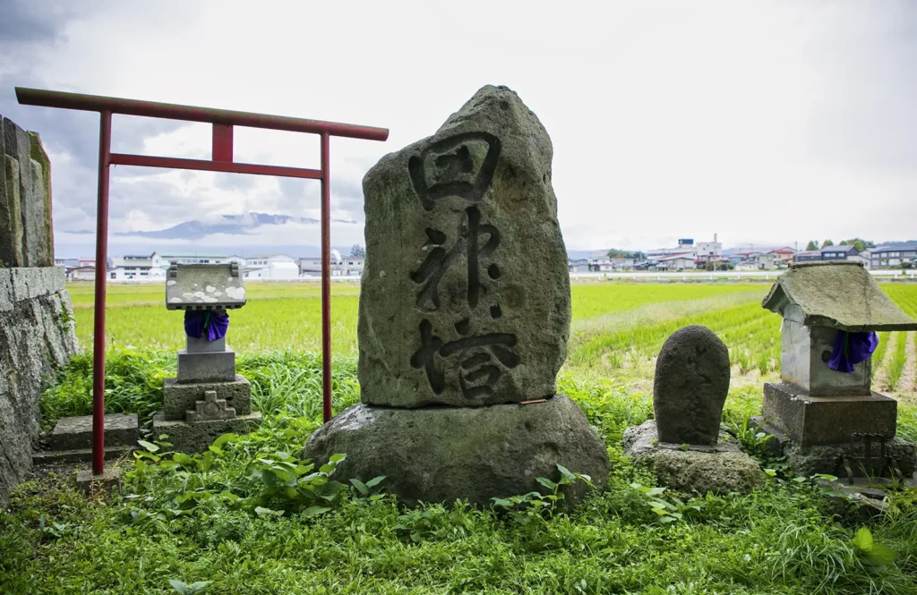 「神の田」を冠した土地にある田園のまんなかに、その社はぽつんと建っていた。祀られているのは保食神──まさしく田んぼの守り神だが、同時に「餅でイボをこすって供えるとイボが取れる」との言い伝えでも知られた祭神でもある。イボを取る神仏は全国各地にあって、山形県でも「イボ取り地蔵」が10ヶ所以上存在する。先述した歯痛同様に、イボは〈命に直結しない病気〉として庶民を苦しめていたのだろう。