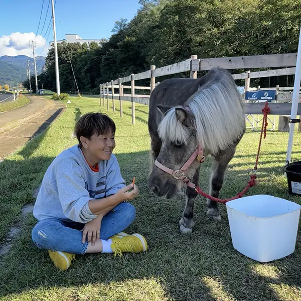 そもそも、千秋さんがホースセラピーの可能性を確信し、その普及に人生を捧げる原点となったのは、2001年に障がい者支援施設の職員として、ご自身の勤める施設の利用者さん数名を連れて川西町の乗馬施設を訪れた際の衝撃的な体験から。それまで施設内では一度も笑顔を見せたことがなかった聾唖の利用者が馬にまたがり、馬がゆっくりと歩き出した途端に、これまでに見たことがないほどの満面の笑みを浮かべたのだ。その様子を撮影した写真を見た母親が「こんなに嬉しそうな顔は初めて見た」と涙を流して喜んでくれたという、馬が持つ癒やしの力を目の当たりにした体験だ。