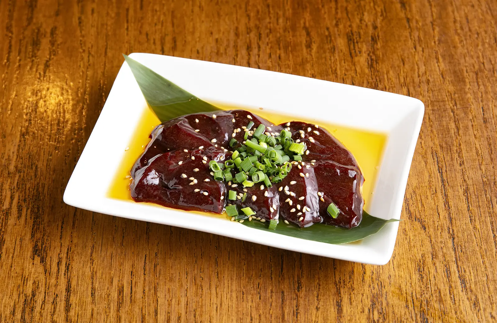 ゴマ油と塩で味わう、山形市『馬かもん』の馬レバー刺し1,480円(2026年1月現在)。コリコリとした食感と臭みのない味わいは格別と評される